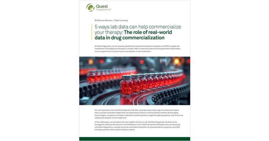 Discover how to drive better outcomes and bring new therapies to market more effectively by leveraging Quest’s lab data repository, expert support, and advanced analytical capabilities to unlock the full potential of your new therapies.